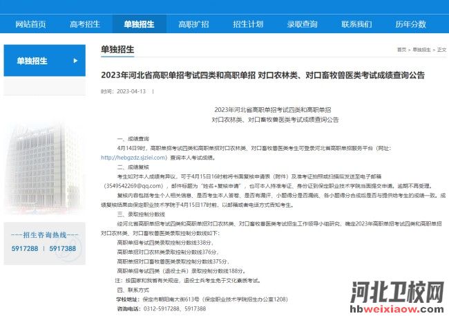 2023年河北單招考試四類和對口農(nóng)林類、對口畜牧獸醫(yī)類錄取分?jǐn)?shù)線公布