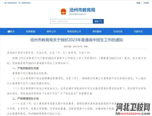 滄州市教育局關(guān)于做好2023年普通高中招生工作的通知渤海新區(qū)黃驊市教育局、石油分局、各縣(市、區(qū))教育局、市直中學(xué):